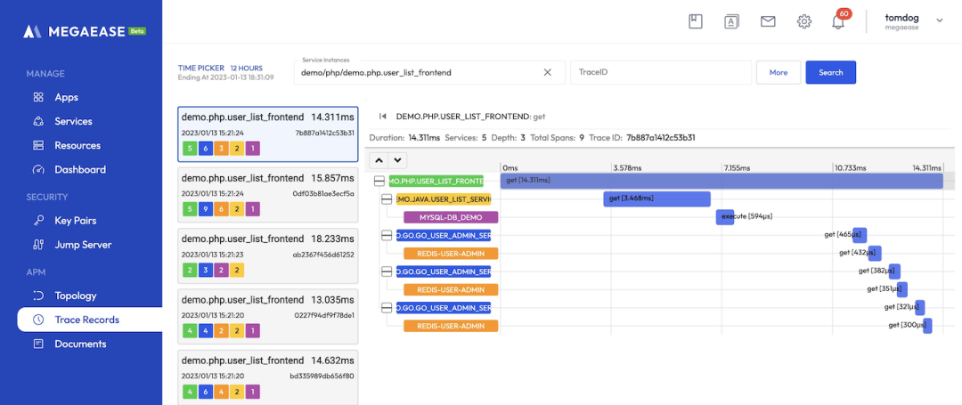 Docker-Compose 方式。您需要上传的是标准的 Docker Compose YAML 文件。我们还支持 APM ,只要您的程序集成了 Zipkin,并按照MegaEase Cloud 的配置(需要设置 zone, domain, service三个名称)上报数据,MegaEase Cloud 就可以展示微服务的调用链。