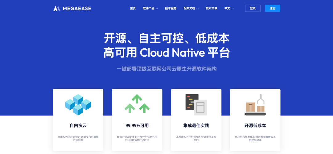注意,我们并没有重新发明一个“云”, MegaEase Cloud 这个“云”并不售卖任何的硬件资源,用户只需把服务器(无论是不是云的)添加进来,然后,通过 MegaEase Cloud 用户就可以一键部署高可用的开源软件,并进行相关的运维,以此来构建基于开源的完全自主可控的软件架构, MegaEase Cloud 只是一个控制台,可以用于所有的云,甚至私有云 。